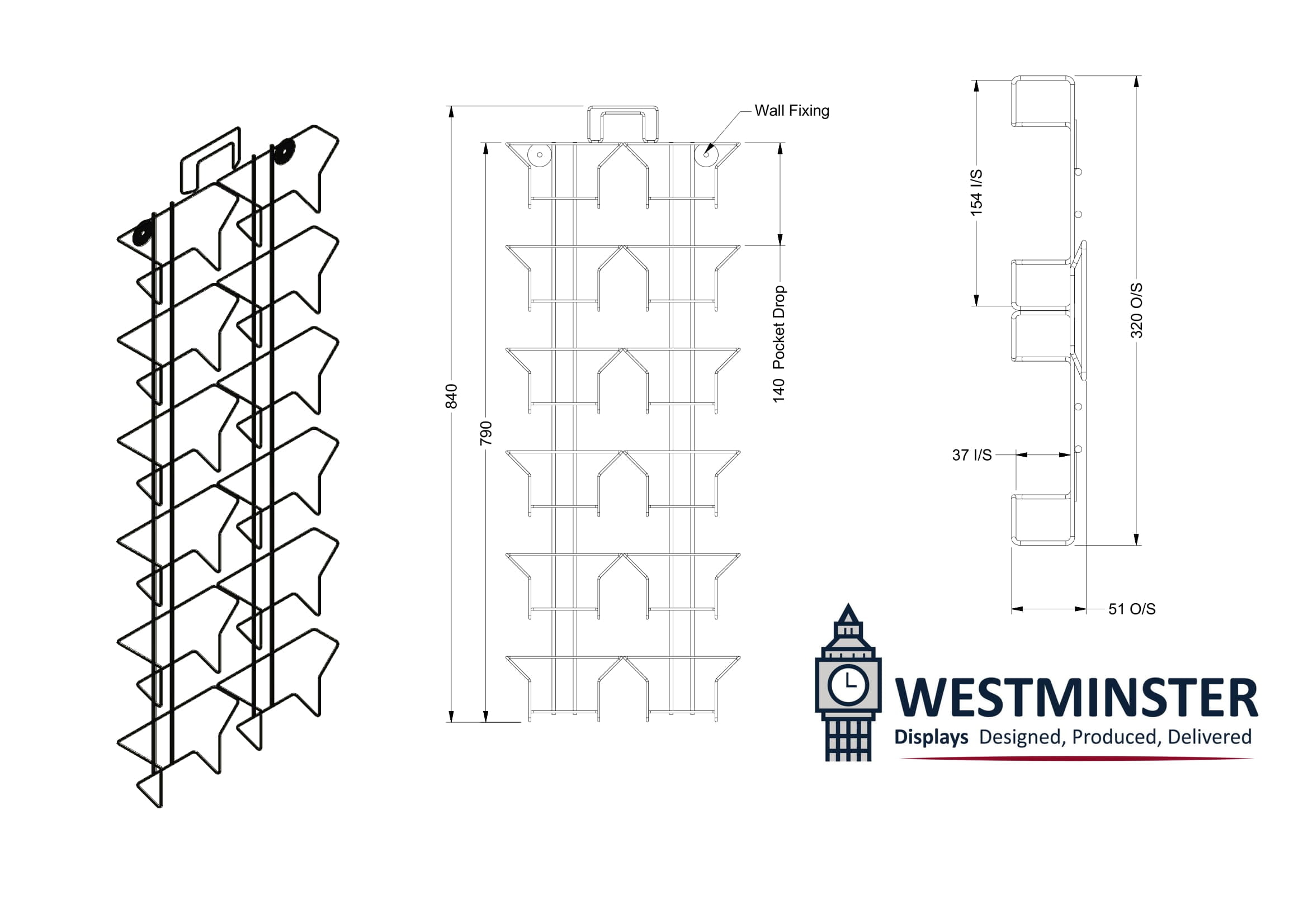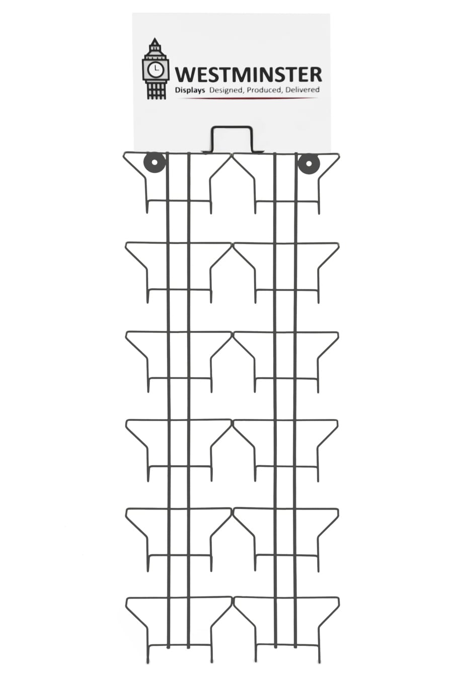 This wall mounted rack is a highly effective method of displaying cards utilising limited or unused wall space.