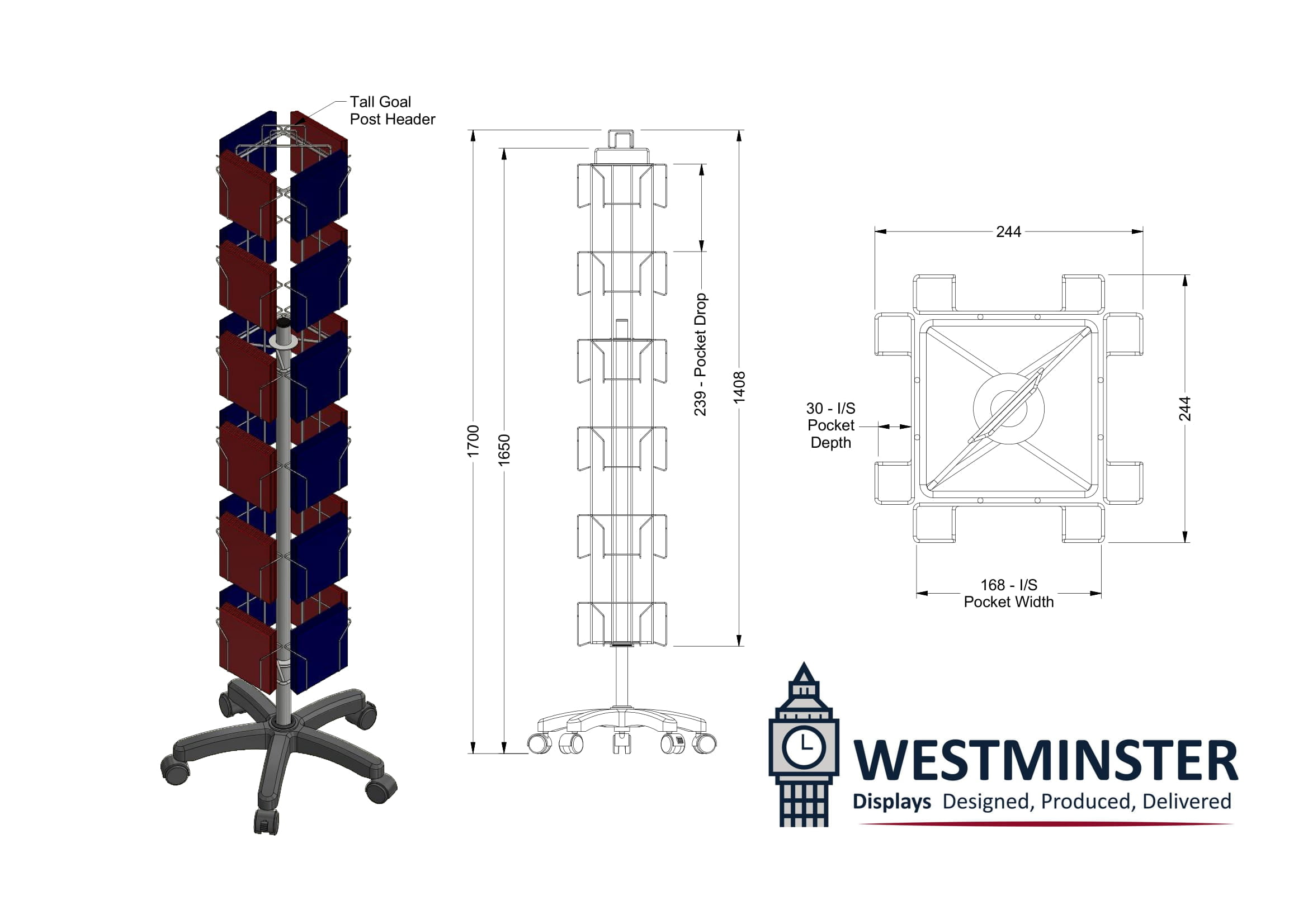 Footprint: 244mm X 244mm Height: 1700mm